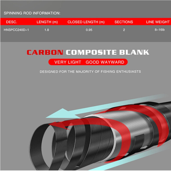 Well presented 1.8 Meter Spinning Rod Catch a wide variety of fish with this little beauty. 2 piece 180cm8-16Lb Line WeightIdeal Rod for Bream, whiting etc. Medium Action Oem Slip-free Cork Handle Fishing Rod Professional Spining Fishing Rod Carbon Fiber