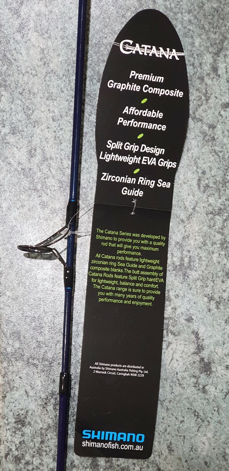 Brand new with tags Shimano Catana Estuary Spin 66224 Ton Toray Graphite 3 -5 Kg 2 piece 198cm (6′ 76″) longFREE POSTAGE Pick up Bayswater or Croydon, Vic.